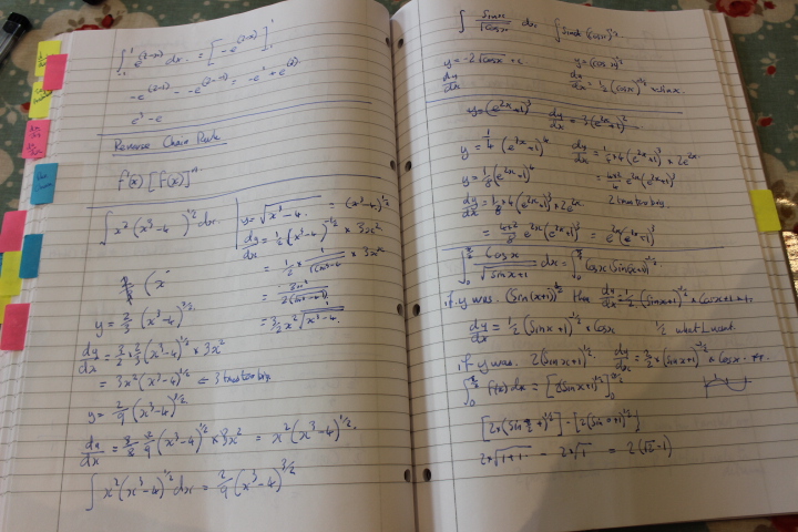 The differentiation covered a number of tools for performing differentials of complex functions. Equally, the integration chapter covered, a large number of tools for integrating complex functions and overlapped substantially with trigonometry and binomial expansion. It took quite some time to cover this. The integration chapter alone is four hours.